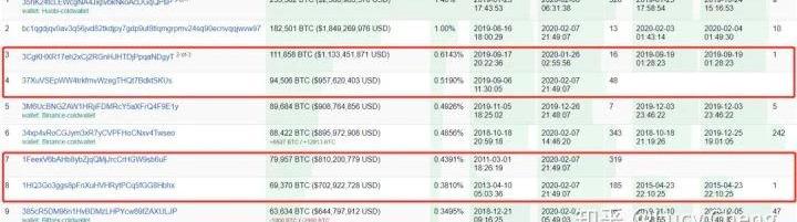 1FeexV6bAHb8ybZjqQMjJrcCrHGW9sb6uF地址的比特币转入转出情况而更为重要的是,持币者和钱包地址并不是简单的一对一关系;将BTC分散存储在多个地址内才是大多数比特币富豪们的常规操作。也就是说,不仅仅是谁,就连他持有多少比特币我们也无法找到确切的答案。