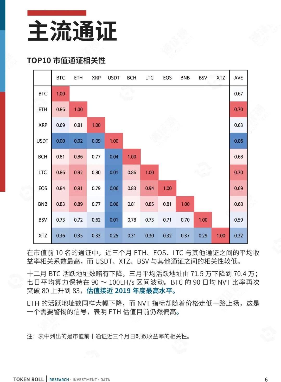 截至2019年12月末,全球数字通证总市值为1953.43亿美元,相比上月末下跌132.4亿美元,跌幅为6.3%。12月日均成交额为681.98亿美元,较上月减少76.57亿美元,跌幅为10.1%。BTC本月一度再探新低6433美元,但在后半月展开小幅反弹,目前价格维持在7000美元上方。BTC以87.4%的年收益率成为2019年度收益率最高的大类资产,领先全球主要股指与黄金、原油等大宗商品。2020年1月3日,伊朗伊斯兰革命卫队少将、圣城旅指挥官卡西姆·苏莱曼尼在伊拉克境内遭美军暗杀。随着中东地缘紧张局势加剧,BTC一反常态止跌反弹,同时原油、黄金均不同程度上涨,BTC作为避险资产的属性得以体现。十二月市值排名前50位通证涨跌幅的中位数为-10.7%。涨幅最高的是HEDG,上涨120.5%,现位列Coinmarketcap21名。本月,通证通编制的20个BICS二级行业指数除稳定通证、供应链2个行业外全面下跌。其中零售电商行业指数跌幅达到为31.1%,公共服务、信息技术、实物资产、数据存储、通信服务、项目服务跌幅均超过20%。BTC的90日均NVT比率再次突破80上升到83,估值接近2019年度最高水平。