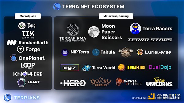 2021年底,Terra上出现了一个新趋势:NFT、元宇宙和游戏。从8月份Terra上NFT项目爆发开始,这在当时积极地引发了对生态系统的炒作。然而,随着NFT项目数量的快速增长,质量并没有得到保证。此外,Terra上的NFT仍然有有限的用例。自从Terra宣布进入韩国游戏市场后,Terra的下一步行动就更加清晰了。NFT将用于游戏,支持Terra上这一领域的繁荣。NFT、元宇宙和游戏将在2022年成为Terra上一个很有前途的领域,到时初创项目将启动,并且该领域还获得了许多VC(Hashed、Chiron)的资金。