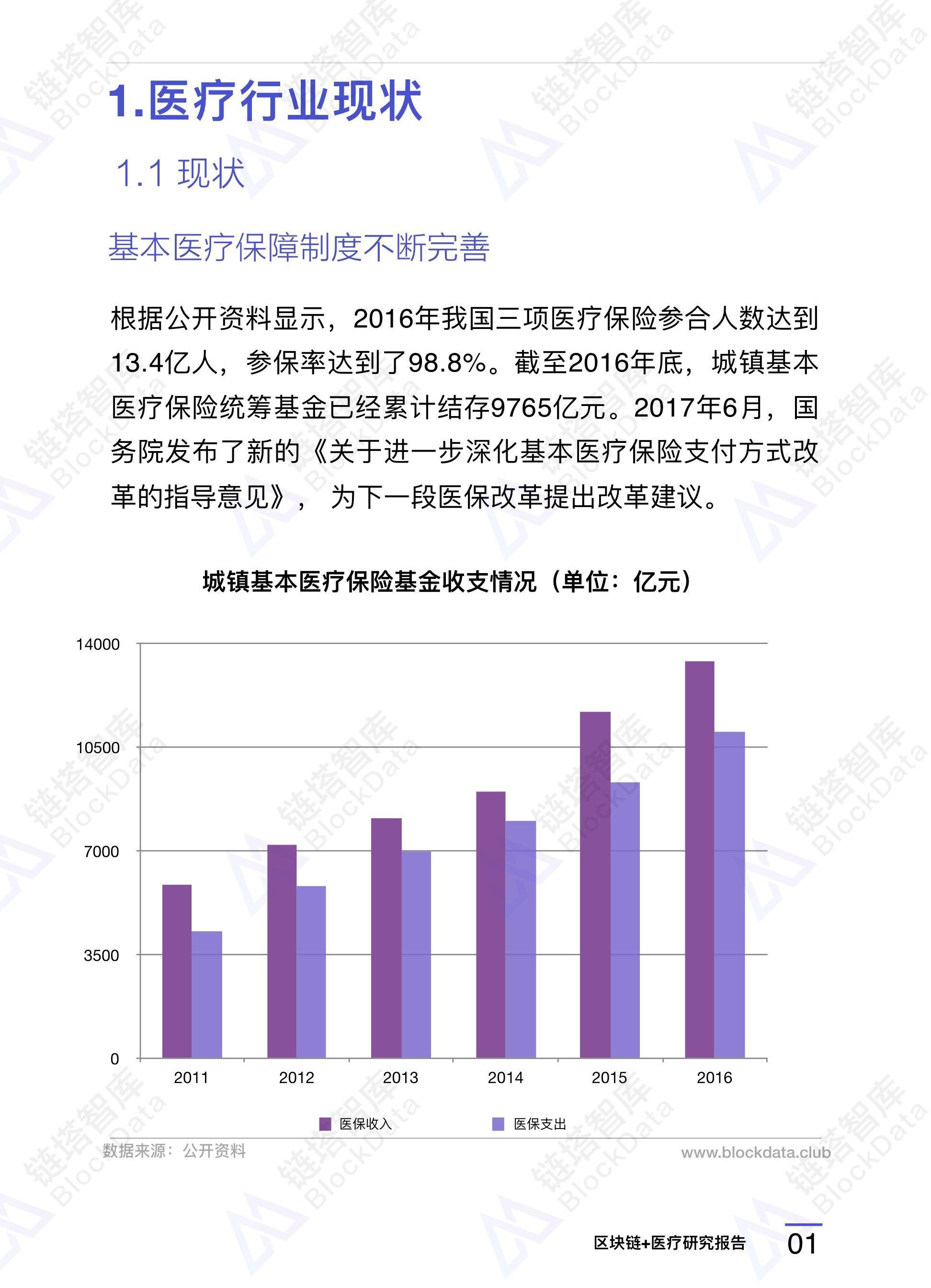 2019年两会期间,全国人大代表、小米集团董事长兼CEO雷军在个人社交媒体账号上公布了自己准备的提案。文中提到,建议国家有关部门逐步推动5G技术在医疗卫生领域的应用,使云计算、人工智能、虚拟现实/增强现实、物联网、区块链等技术在医疗卫生行业更好地集成创新和融合应用,满足人民日益增长的健康医疗新需求。医疗市场规模已达3万亿元,并且将以10%左右的复合年增长率持续增长。但目前,医疗行业尤其是医疗数据领域存在着数据收集缺乏统一标准、分类模糊、数据安全和隐私性难保证等问题。区块链能帮助解决行业痛点,区块链天然适合记录数据信息。医疗数据?业完全能利?这?优点,把不准确和存在差异影响的医疗记录上链。因此,不少区块链医疗企业应运而生。据链塔数据平台统计,目前共有74个区块链医疗项目。其中国内的项目为36个。在具体的医疗细分领域方面,应用最为广泛的就是医疗健康数据领域。