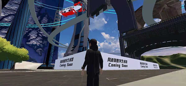 在虚拟世界里,他可以更方便的买买买,只不过买的是一些NFT画作,也可以在里面的礼堂祈祷。比起现实世界,这里有着更多的广告牌。