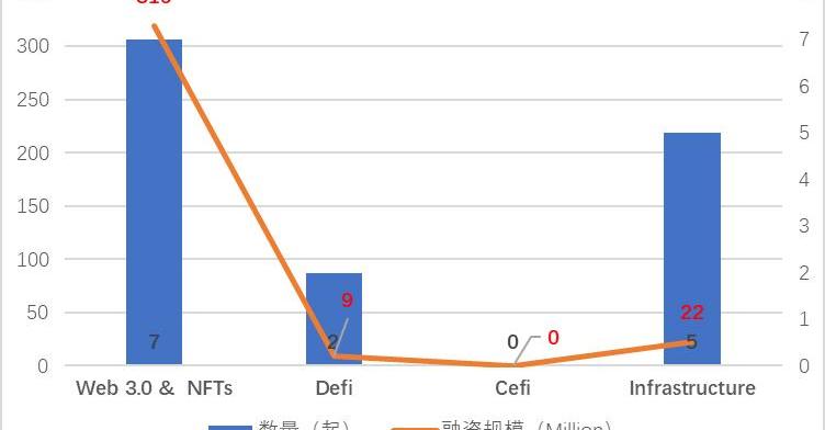 具体赛道方面,Web3.0&NFTs赛道7个项目,占比50%,融资总规模19亿美元,占比近91%。