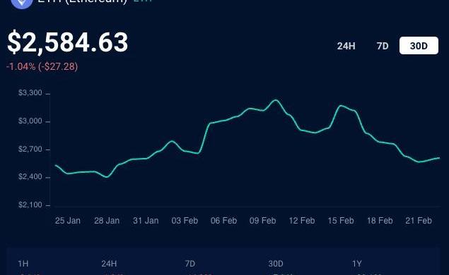 下面是ETH的7天趋势线,我们可以看到代币的价值在此期间下跌了16.09%。