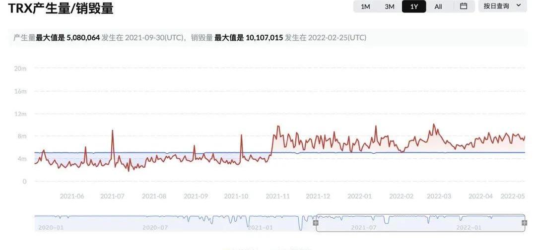 TRONSCAN最新数据显示,过去二十七周,TRX持续处于通缩状态,通缩量达3.82亿枚TRX。随着波场网络交易、账户的增加,以及DApp生态的持续扩大,波场网络中销毁的TRX数量正呈现波动上升趋势。