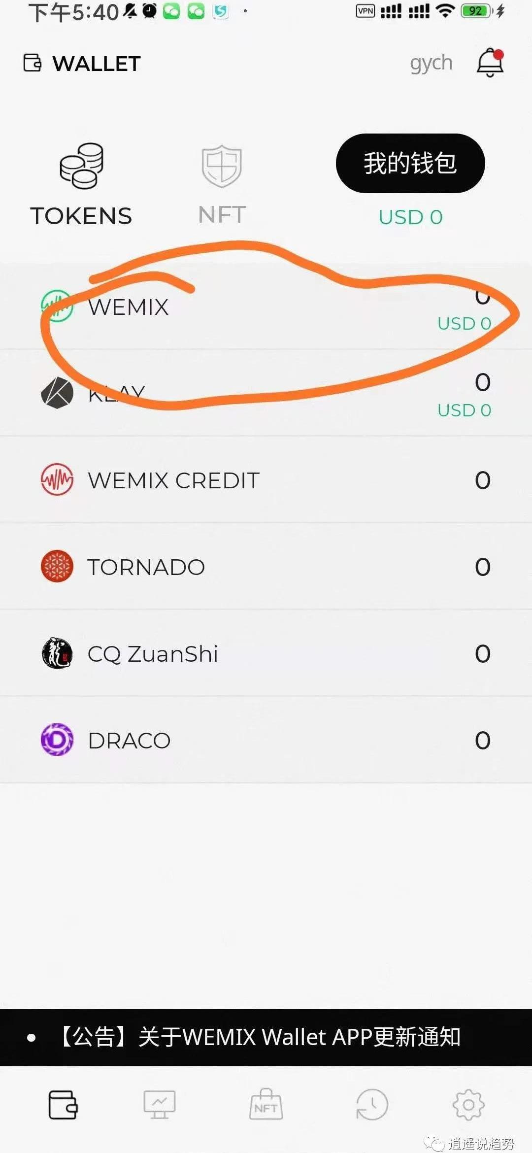 然后会在WemixWallet钱包中会有显示您的wemix余额。4.转出wemix,打开WemixWallet钱包,点击wemix,然后点击传送代币。