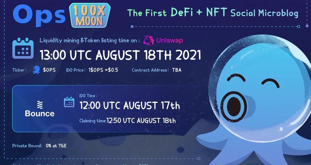 Ops5%的通证认购将在8月17-18日于Bounce平台进行,首日释放量为348,623枚,剩下的95,000,000枚将在1.5年内线性释放,在第545天释放完毕。