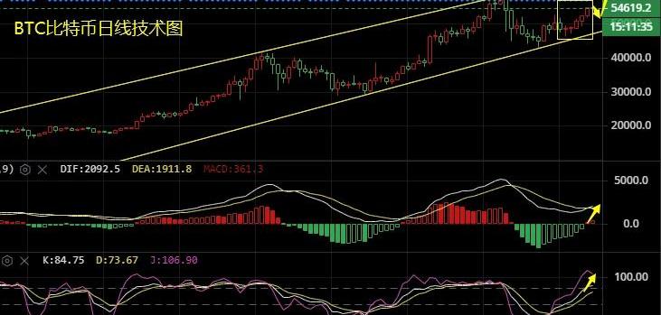 比特币:本周凌晨阶段和亚盘总是习惯性的拉涨,比特币持续性大涨今日一度突破55000美元关口,最高触及55823.2美元一线,可见多头是比较强势的。短线一波急跌插针向下超2000点,目前整体的行情处于54000美元关口调整。谈老师觉得这一波回调是有预谋的,其一本周行情大涨,再次临近历史高位,前期不少高位套牢者解套以及多头获利者出局,其次就是随着3.12历史性的大跌到来,“买预期卖事实”造成的恐慌心理致使众多散户处于观望之中。这一波筑底回升完美的达到了谈老师布局的中长线目标,恭喜那些信任并跟上操作的朋友!