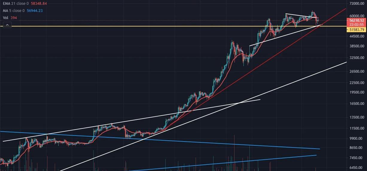 虽然比特币横盘久已,上攻60000美金屡屡失败,但加密货币的影响力,乘着Coinbase上市纳斯达克的东风,已经在全球刮起势不可挡的支持旋风。下面直接开始今天最新的行情分析