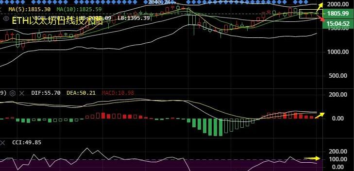 比特币:日线连续锤子线收阳,低位不断抬高,币价再度企稳在两大均线之上,多头趋势依旧。BOLL呈开口状态,上行空间随着行情的运转向上延伸,上方重点关注60000美元关口阻力,而下方则需关注MA5/MA10粘合于57800美元一带支撑。短周期KDJ技术指标缓和运行,附图MACD上行动能缩量,预计比特币将保持高位调整。