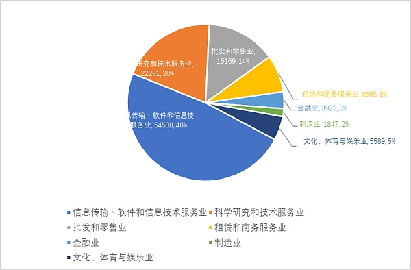 近八成注册在信息服务、科技服务和批发零售三大行业
