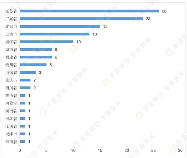 结合118项出台的地方和企业相关区块链技术标准来看,从地区分布上,江苏省以出台26项区块链标准位居第一,广东省以23项紧随其后。北京市、上海市和浙江省以十余件区块链标准位于第二梯队。位于第三梯队的包括福建省、湖南省和贵州省等地。总体看,各地区区块链标准成果与地区区块链相关企业规模和政策扶持力度息息相关。