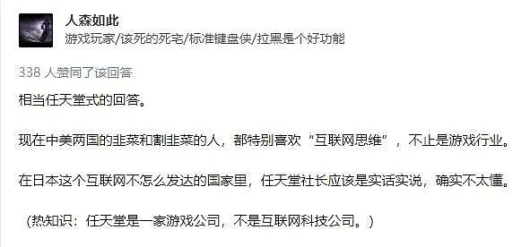 从知乎网友的留言来看,赞同古川俊太郎的言论偏多,而反对党则称任天堂此番言论太过保守。但有趣的是,讨论到最后网友们纷纷把焦点放在了“社长究竟是真不懂,还是假不懂”上,再次拿西瓜头的古川俊太郎戏谑一番。