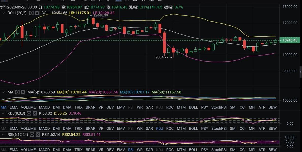 比特币昨日行情午间两点左右行情暴跌,打开下方空间,下行至最低点10593.77后,晚间八点左右行情反弹,至今日早间行情拉升至最高点10954.97附近后回踩,目前稳定在10924附近。