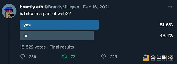 尽管今天的领袖们发表了大量无特色思想的文章,但仍然没有就"Web3 到底是什么"达成共识。"Web 3"的定义取决于你属于哪个派别,Web3 是局,Web3 是未来,Web3 正在将世界代币化,Web3 是 VC 撤资的借口,Web3 是加密货币的另一个名称,各种声音充斥着我们的耳朵。即使是加密社区也无法确定比特币是否是 web3。