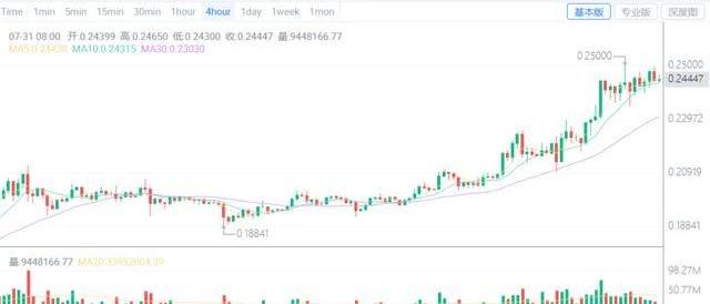 昨日ETH经过4H周期窄幅震荡,从310出一举突破332的4H中枢最高点,再度走出4H周期上涨一笔。