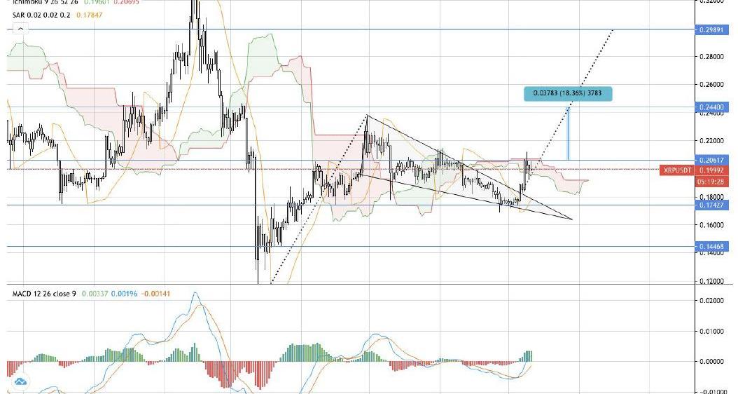 如果XRP能够突破0.20美元,那么它将升至一目均衡线和阻碍它前进的阻力线之上。在这之后,XRP很可能会看到0.25美元--这个价位至关重要,将决定涨势是冲动性的还是修正性的。如果是修正性的,这对长期XRP持有者来说可能是一个非常糟糕的消息,如果是冲动性的,2020年价格将进一步上涨。如果0.17美元被大幅跌破,则不会出现上涨走势。如果0.17美元被跌破,那么极有可能向年内低点移动,并将看到XRP再次触及0.14美元,进而导致我们当前仓位损失27%。