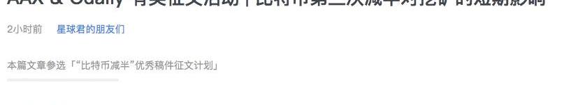 于是我们想来聊聊大家关心的话题。比特币减半的前一周,AAX交易所联手Odaily星球日报共同发起了“比特币减半征文奖励计划”,目前为止已经收到了来自行业里50多位创作者的投稿文章,以下是我们精选的部分文章~