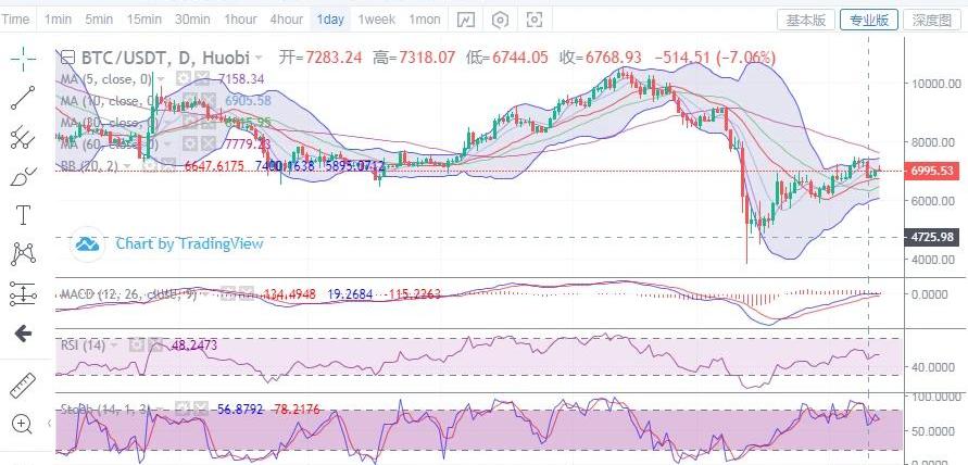 昨日比特币白盘并没有出现太大的波动,维持在6900-6780之间震荡运行。直至晚上20点,比特币价格开始走出上行,价格最高触及7179位置。随后价格再次走出回落,截止到目前早7点30分比特币价格运行至7000位置附近。