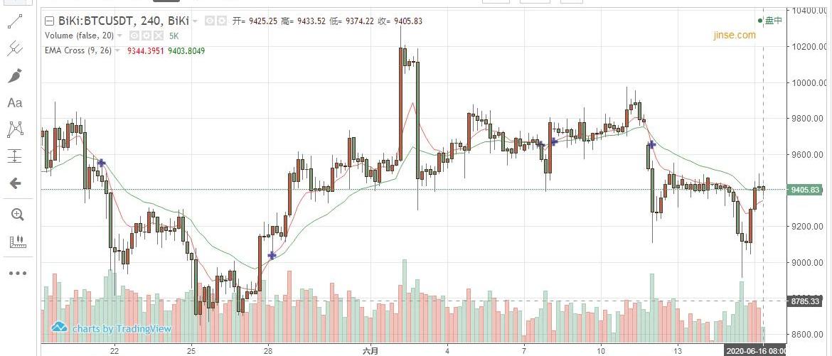 日内比特币走势呈现的是探底回升,早间下跌位8900一线,目前反弹再度来到9350一线,早间的下跌直接刷新的前几日的低点,刷低之后并没有得到加速的下跌,反而是在周线的短期均线上方出现支撑开启了反弹,目前反弹再度来到9350附近,暂时的走势规律是符合前一轮的规律的,下跌刷低,反弹。