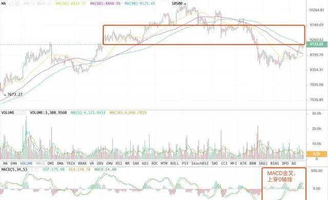 日线级别,MACD金叉,小时线和4小时级别的金叉可能会反复,但日线级别则较为稳固,能反映趋势,大盘终于有点反弹的样子,目前MA60日均线成了要突破的压力位。后续如果量能足够的话,突破很简单,但量能不足的话,可能会以MA60线为据点展开争夺。总体而言,形势在朝着好的方向发展。