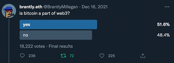 尽管今天的领袖们发表了大量无特色思想的文章,但仍然没有就"Web3 到底是什么"达成共识。"Web 3"的定义取决于你属于哪个派别,Web3 是局,Web3 是未来,Web3 正在将世界代币化,Web3 是 VC 撤资的借口,Web3 是加密货币的另一个名称,各种声音充斥着我们的耳朵。即使是加密社区也无法确定比特币是否是 web3。