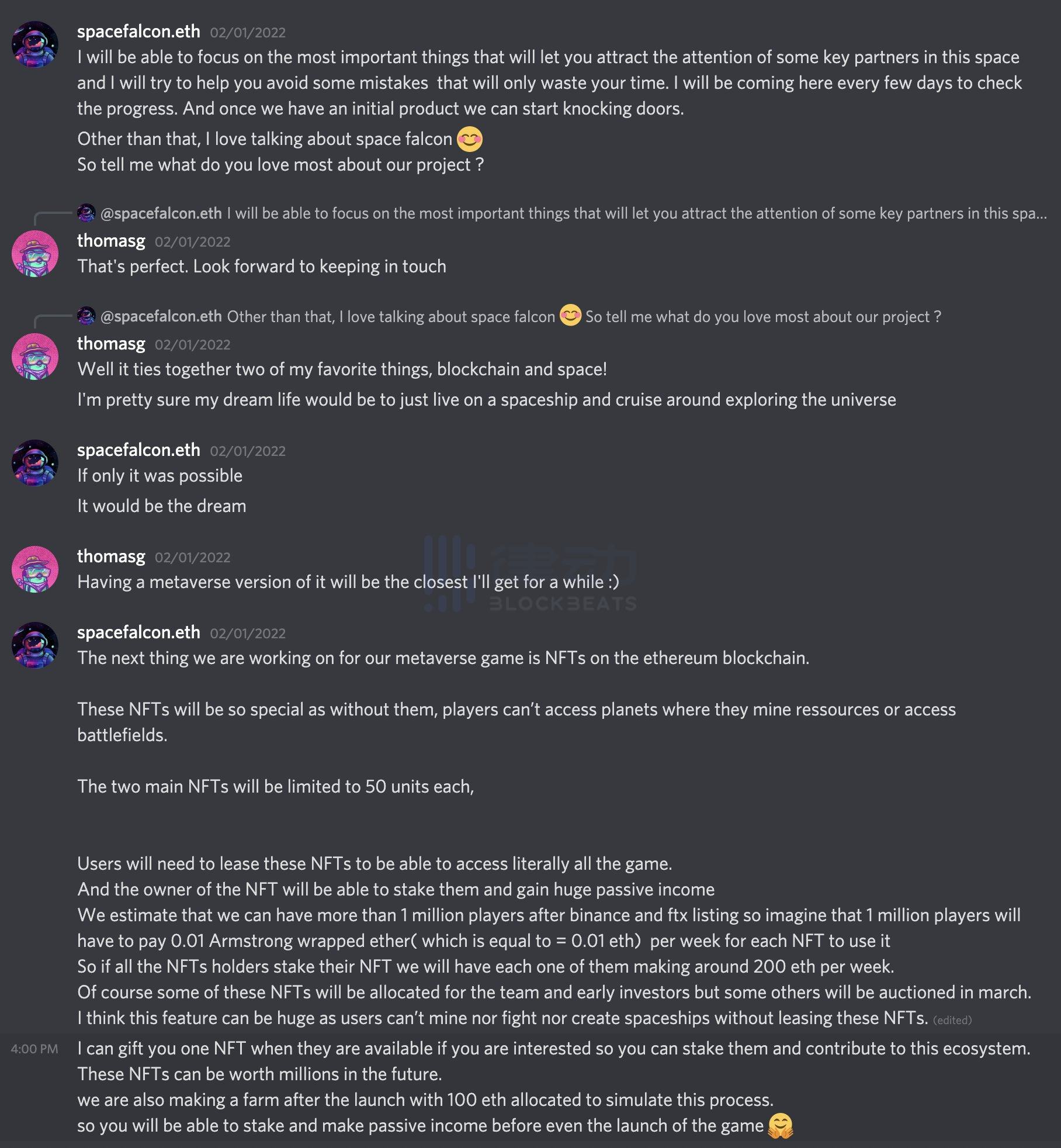 Linh 给我回了一封非常体面的电子邮件,告诉了我她正在做的的元宇宙项目 Space Falcon。我其实对这个项目并提不起兴趣,但我也不是一个真正的 NFT 玩家,所以没有任何理由排斥她的想法。