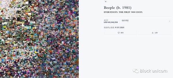 2月25日至3月11日期间在英国佳士得推出加密NFT作品《每一天:前5000天》的拍卖,也是佳士得首次拍卖区块链的数字艺术作品。拍卖最后一天3月11日,区块链行业臭名昭著的艺术大师,Justin Sun孙宇晨孙哥按照计划动用了巨资6025万美金买下,接近拍卖尾声最后一分钟的最后十几秒,被名为MetaKovan的推特用户实力买下,孙哥只好握紧小拳头锤了锤地板,最终成交价为:6934万美元。
