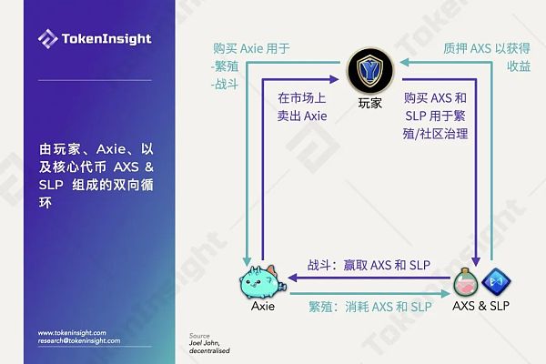 如果玩家想要获得 Axie NFT ,就需要消耗 AXS 和 SLP;因此对 Axie NFT 的需求最终也推动了对 AXS 和 SLP 的需求。反之游戏内的通过与玩家对战,获胜者可得到 AXS 和 SLP。因此,如果创造出玩家对 Axie NFT 的需求,就是 Token 经济良好发展的关键。且 AXS 及 SLP 这两种代币都能透过交易平台直接交易,很容易套现,这也激发了许多玩家的积极性。