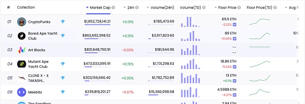 ?当前NFT项目市值排行