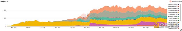 目前,所有跨链桥项目的TVL总和超过了220亿美元,其中Avalanche的跨链桥处于领先的地位。