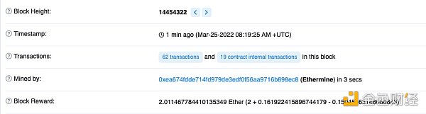 通过eth.gas.station的数据可以查到,平均一笔交易转账的花费在1.96美元左右。14454322高度时的ETH价格在3100美元左右,按3100美元计算,块中交易gas费为500美元左右。