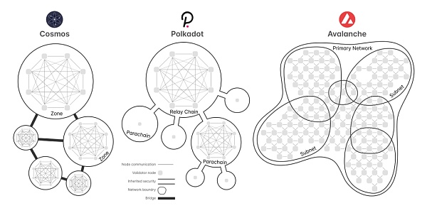 Cosmos、Polkadot、Avalanche 中的链间经济安全拓扑