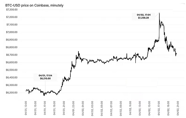 Joe DiPasquale是旧金山加密货币对冲基金 BitBull Capital首席执行官,他对于这次比特币短时暴涨似乎有不同看法。Joe Dipasquale认为,这次其实并没有明确的市场驱动原因促使比特币价格快速攀升,不过市场交易员们却释放出了一个信号,即:虽然比特币短时爬升至7000美元会吸引更多卖家卖盘,但短期内应该不会跌破6000美元关口。