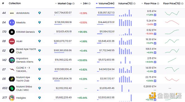 1.Azuki OpenSea交易额超CloneX,目前排名第7 ? ? ? ? ?
