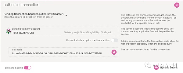 账户可以在 extrinsic 中使用 bagList.putInFrontOf 将自己放在同一个 bag 中质押较低的其他账户前面。请务必注意,这个过程只会将你置于质押较低的帐户前面,并不能保证你将开始获得奖励,因为你的地址可能会放在一个本身不包含在验证人池子的帐户前面。