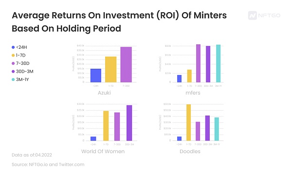 基于持有期的平均投资回报(ROI)汇总图;数据来源:NFTGo.io