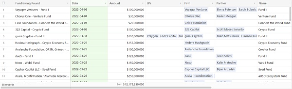根据 Dove Metrics 的数据统计,今年截至 4 月 6 日,加密货币行业风投基金募资事件总共发生 58 起,总募资金额近 120 亿美元。