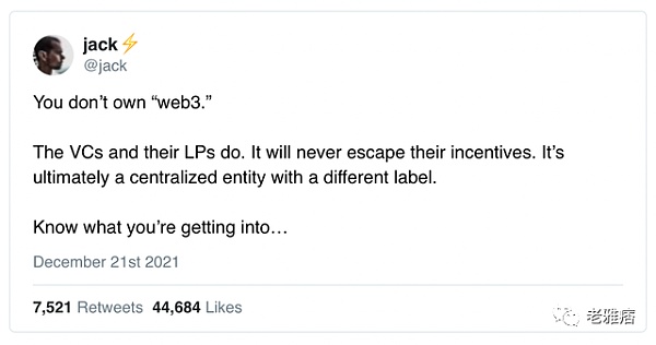 Jack为web3的反对派发表了第一次演讲,并试图设定定义,以引发关于web3中VC所有权的辩论。他改变了局面。它是有效的。
