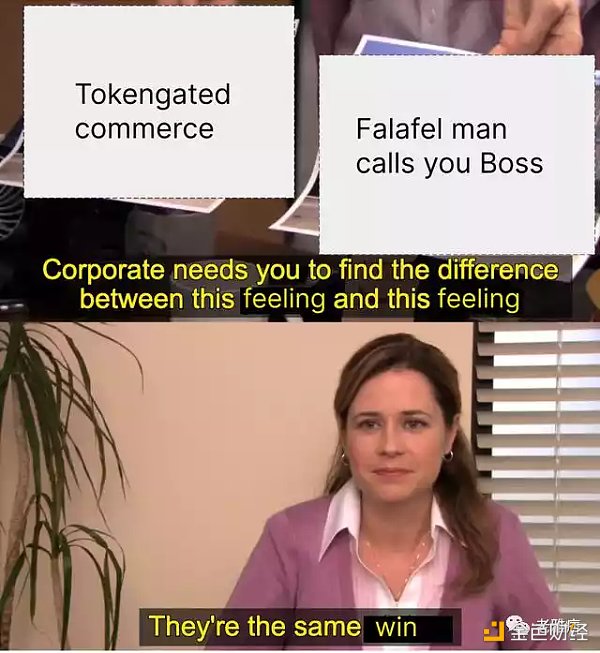 这一刻就是 Token 化商业的全部意义所在。你会意识到,「啊。我现在总算是了解 NFT 和商业之间关系的人了。」NFT 不是商业的输出;它们是商业的输入。NFT 不是一种产品。他们是一种买家的身份象征。