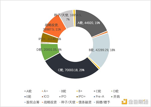 图19. ?2022Q1 中国区块链领域融资轮次分布(按融资金额分类,单位:万美元)