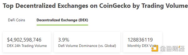 2.过去24小时去中心化交易所的交易量:49.02亿美元