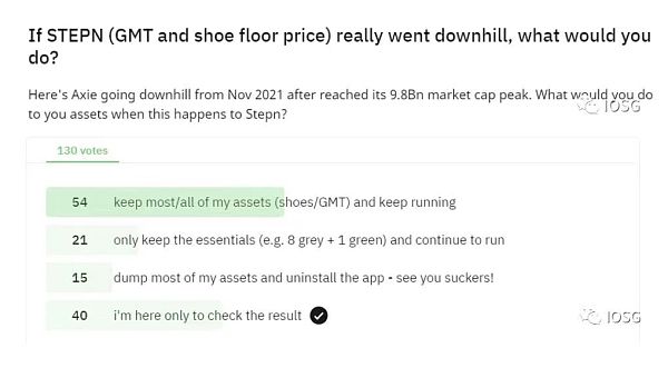 如果Stepn进入死亡螺旋,83%的用户仍会留下鞋子,来源:IOSG