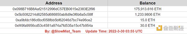 3 月 30 日,慢雾发文称,此次黑客攻击的资金来源于币安提币,且已将 2550 万枚 USDC 交易为 6250 枚以太坊,并进行了分散转移,其中 1221 ETH 转移到了 FTX 和 Crypto.com。