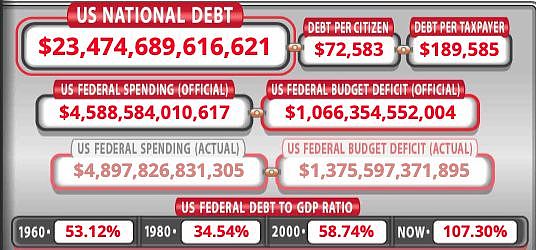 但事实却相反,就在 3 月 16 号,美联储降低基础利率至零,并推出 7000 亿美元量化宽松计划后,美股应声大跌。截至当日16 时,道琼斯工业平均指数收跌 2997.10 点至 20188.52 点,跌幅 12.93%。标普 500 收跌 324.89 点报 2386.13,跌幅 11.98%。纳斯达克综合指数收跌 970.28 点报收 6904.59 点,跌幅 12.32%。迄今为止,道琼斯指数距离 2020 年高点最大跌幅达到 30%。股市早已跌入技术性熊市区间。在这一过程中,美国的联邦预算赤字很可能上探 2008 年金融危机后创下的最高纪录,当时年度赤字曾飙升至 1.5 万亿美元以上。离现在 1.06 万亿美元赤字仅剩4400 亿。
