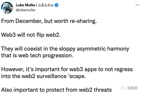 我还认为 Web3 不是 "唯一 "存在的网络。它将与 Web2 共存,至少在若干年(几十年)内。我不是唯一这么认为的人。