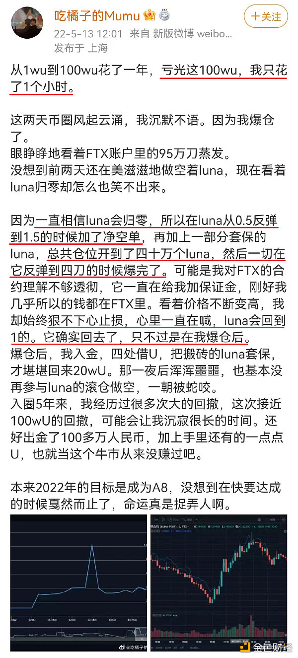 损失中的一半是持有Luna的人,不过这些人本来就是Luna投资者,盈亏同源。