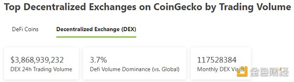 2.过去24小时去中心化交易所的交易量:38.68亿美元
