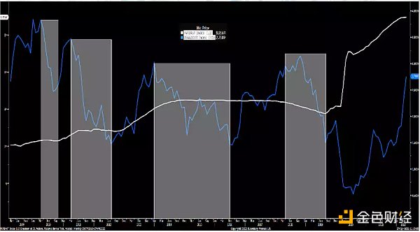 下一张图是黄金的走势曲线,黄金在负实际利率下表现良好,且对增长有一定的前瞻性。虽然它现在的交易并不顺利,但我觉得如果未来全球增长放缓,黄金势必会走高,所以我们要持续关注它的动态。