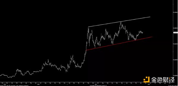 下面这张图是 Bitcoin 最近的价格走势图,一直在较小的范围内波动。一般而言,横盘都意味着大幅的增长。我们现在虽然不确定 Bitcoin 价格是否会走低,但我其实对此并不太过分关心,因为我还是更看重她的长期发展走势。