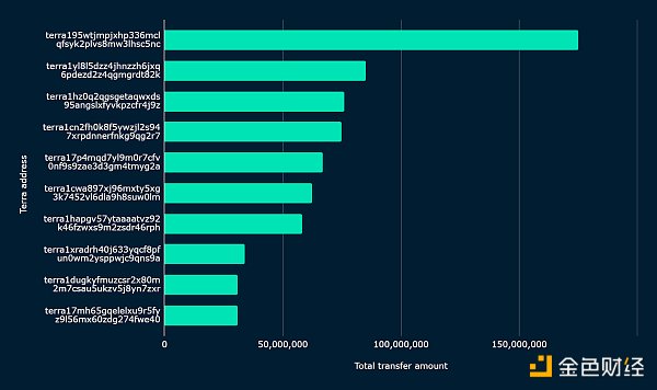 图 13:5 月 5 日至 5 月 8 日从 Terra 到以太坊的交易价值排名前 10 位的钱包(UST)